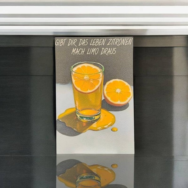 Der erfrischende Druck zeigt ein Glas gefüllt mit sonnengelber Limo und zwei leuchtend Zitronenhälften – ein echtes Symbol für Optimismus. Der humorvolle Spruch "Gibt dir das Leben Zitronen, mach Limo draus" ist eine charmante Erinnerung, aus jeder Herausforderung das Beste zu machen.